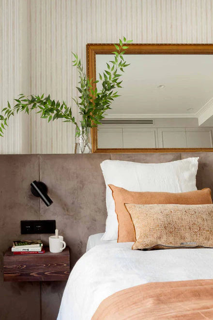 ¿Cabecero aburrido? Dale vida con papel pintado y estilo propio
