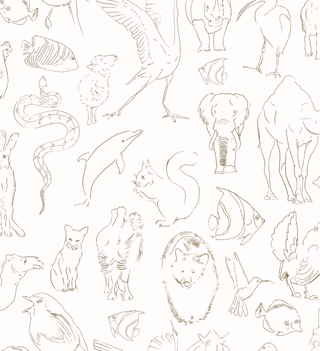 El papel pintado Zoology presenta siluetas de animales en un mundo colorido, fomentando la creatividad...