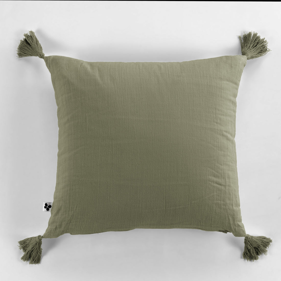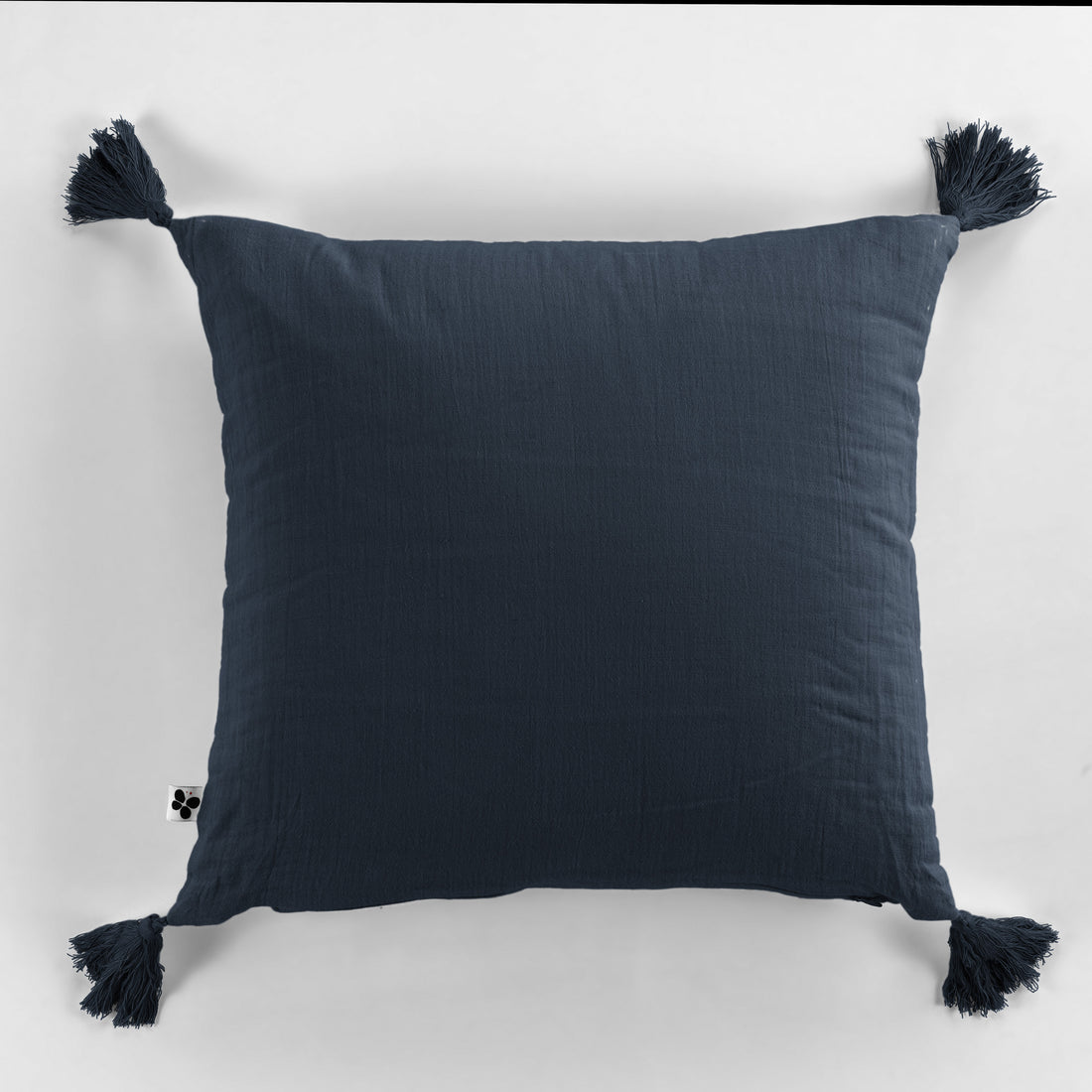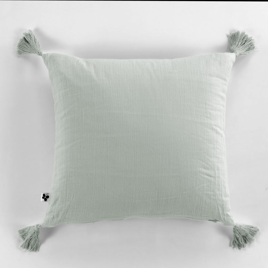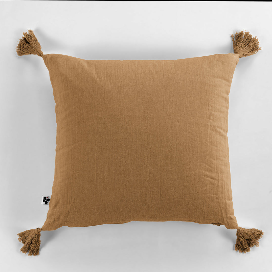 Camino de cama/edredón en gasa de algodón con borlas en las esquinas.