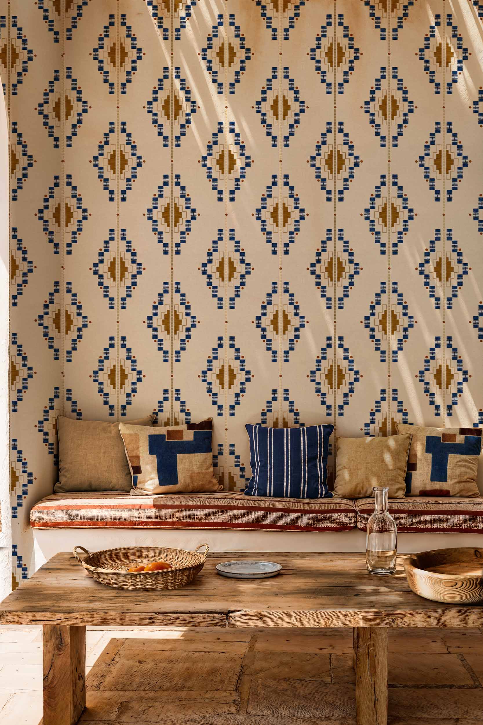 El papel pintado Andes es un diseño de textura que captura la esencia de las tierras altas a través de patrones geométricos inspirados en los ponchos tradicionales. Un papel pintado que transmite calidez, tradición y un estilo natural lleno de carácter.