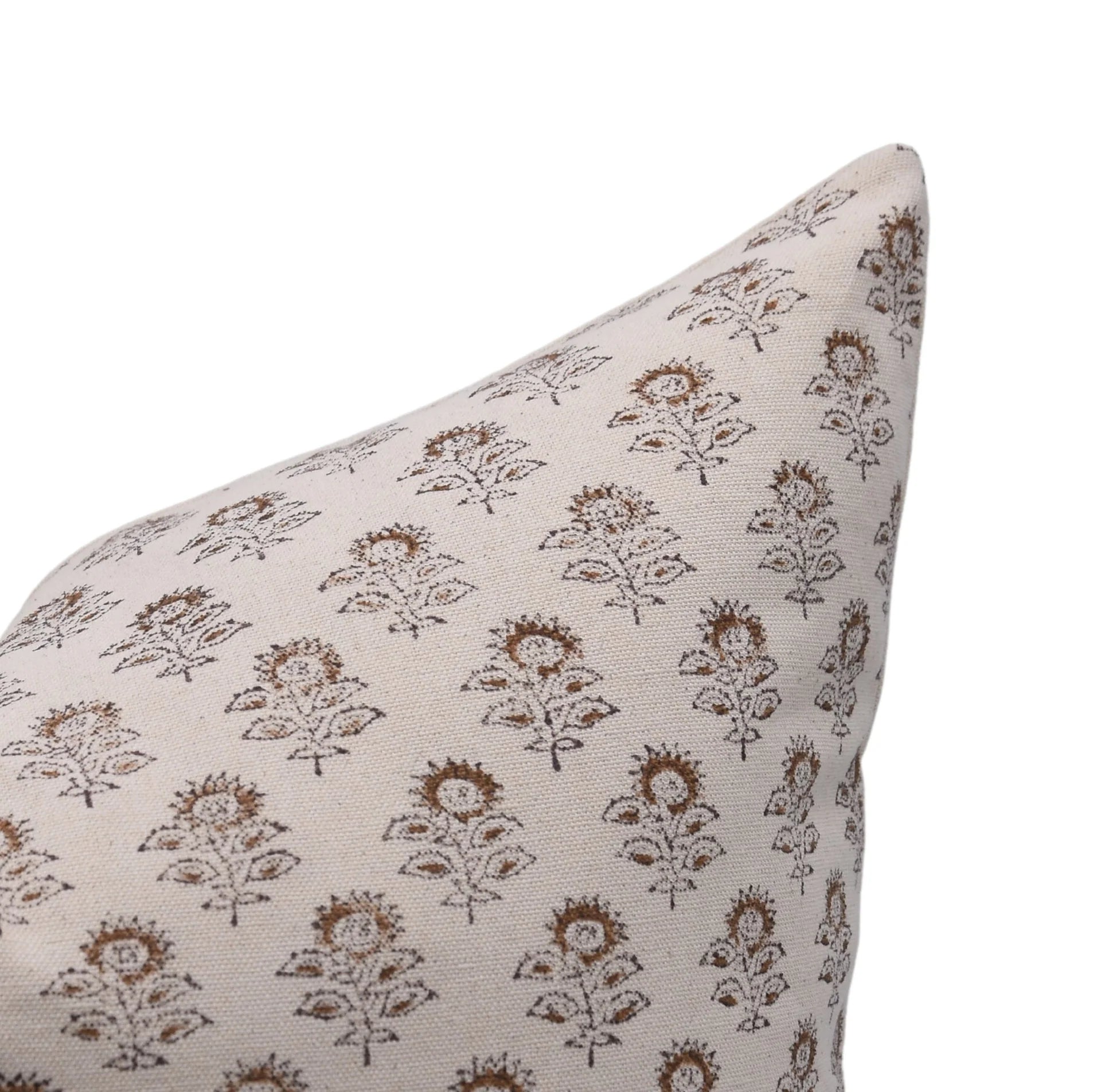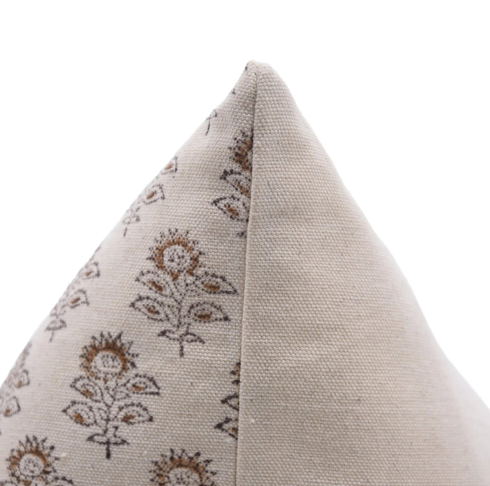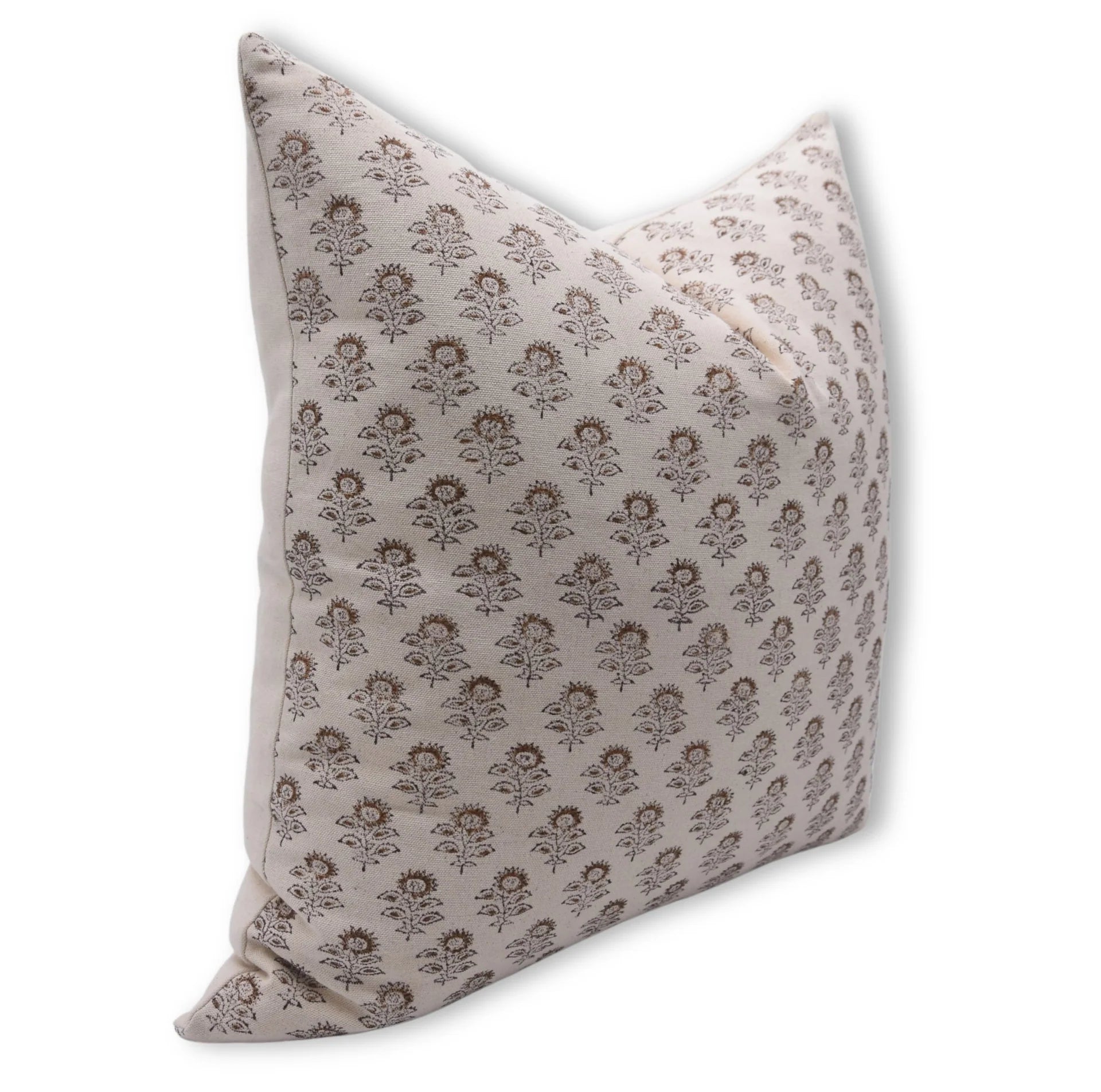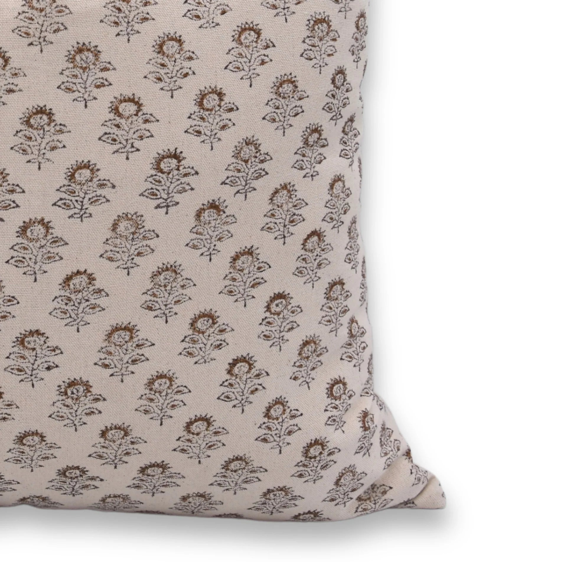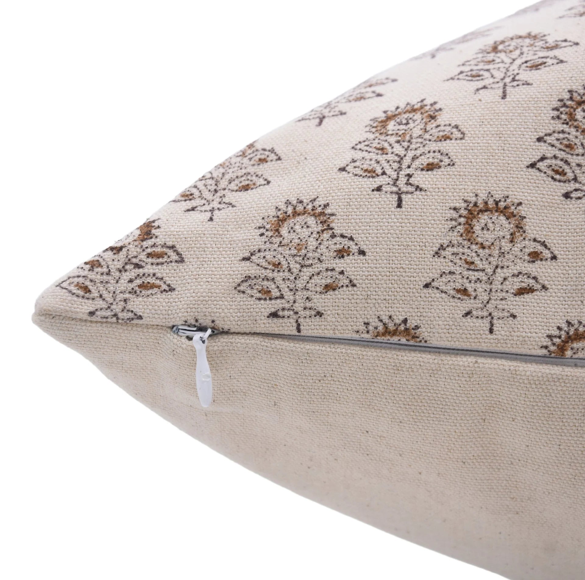Funda de cojín hecha a mano con estampado de bloques por artesanos indios.