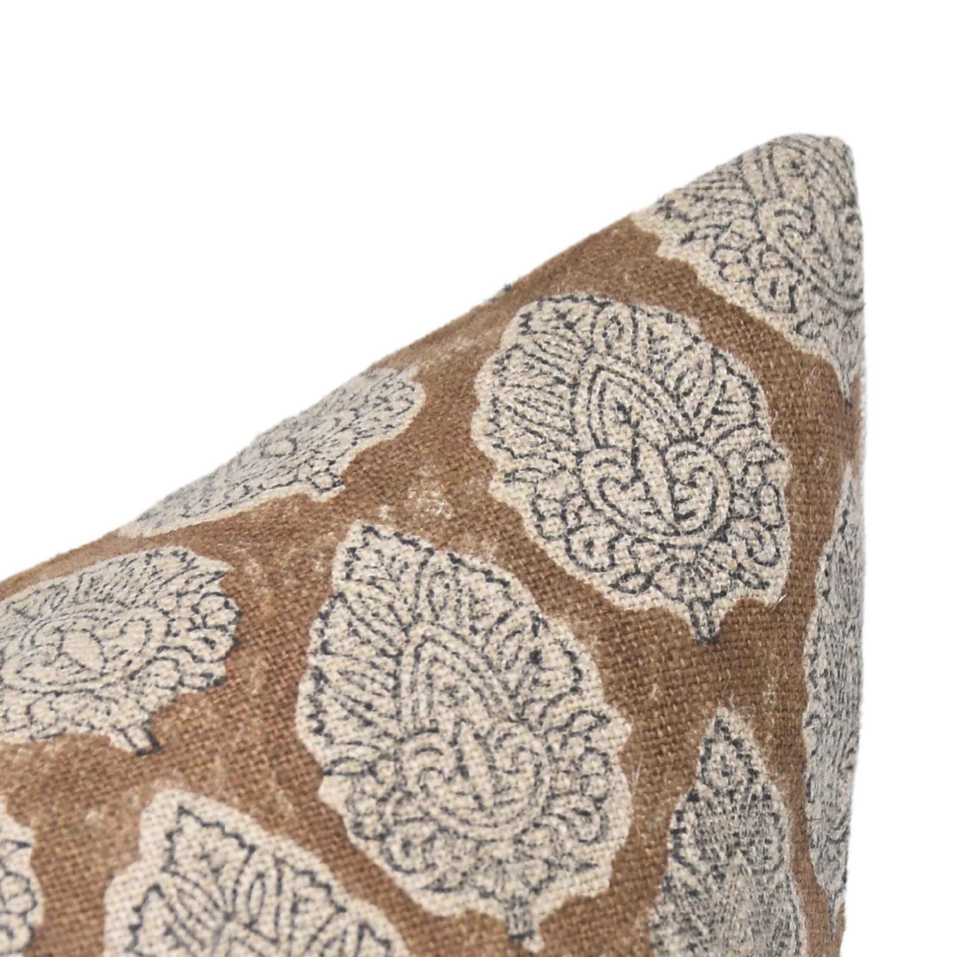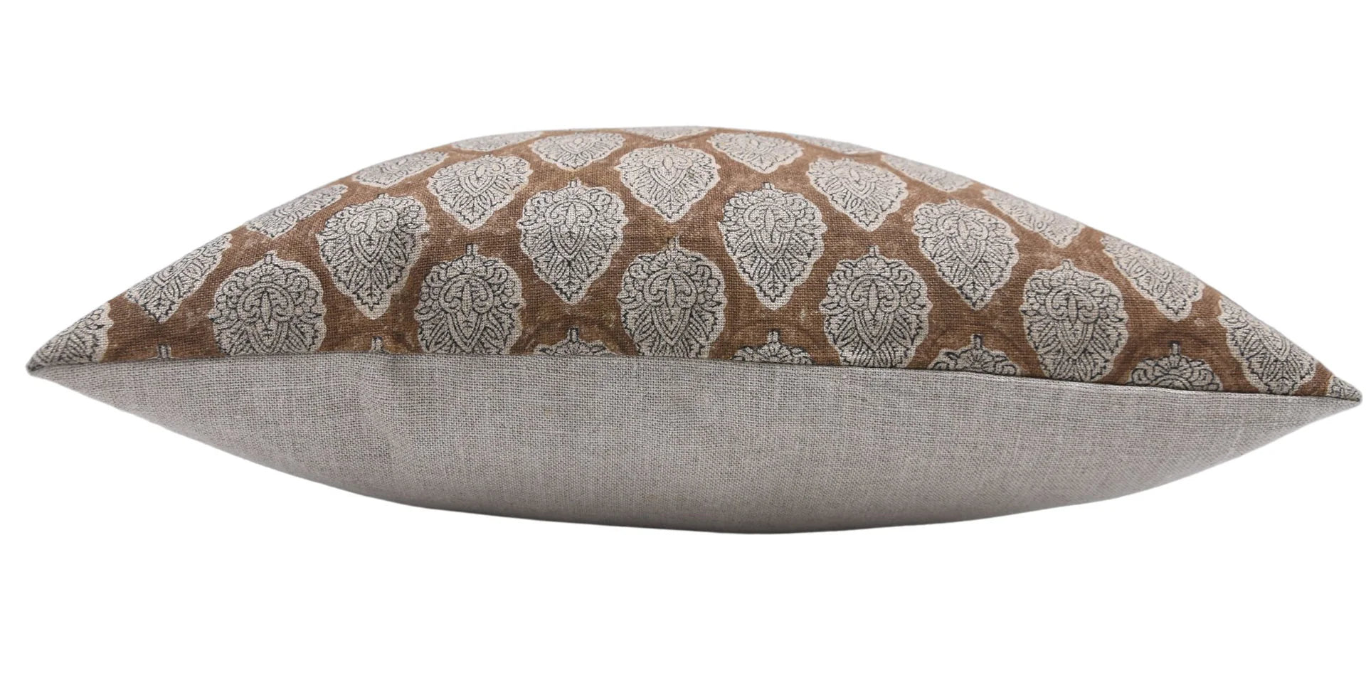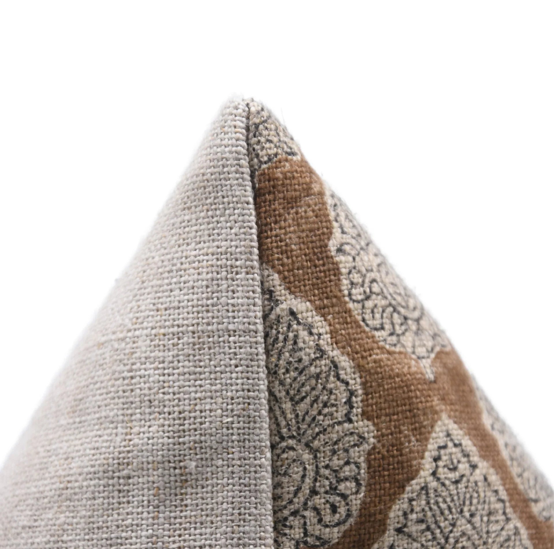 Funda de cojín hecha a mano con estampado de bloques por artesanos indios.