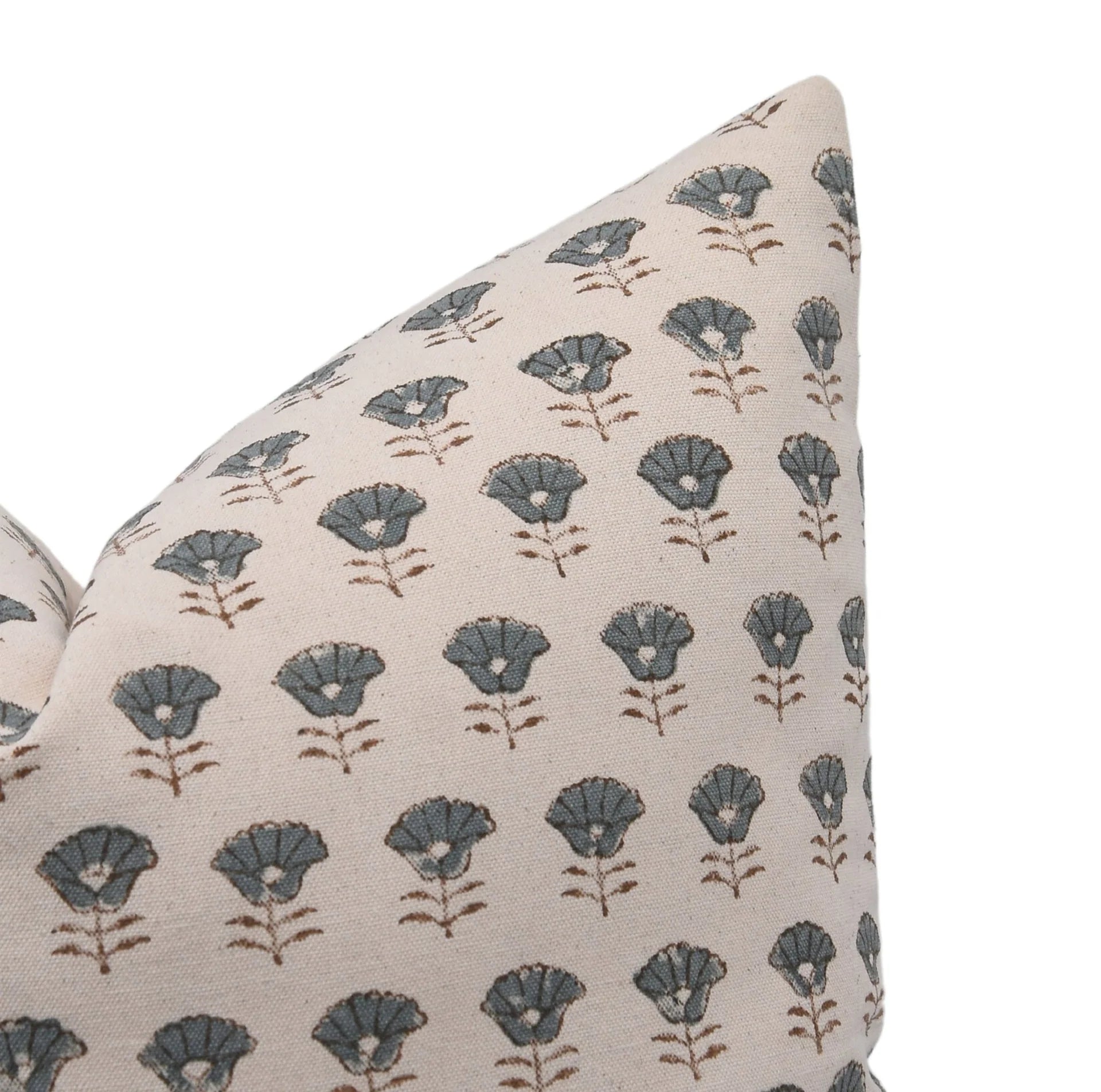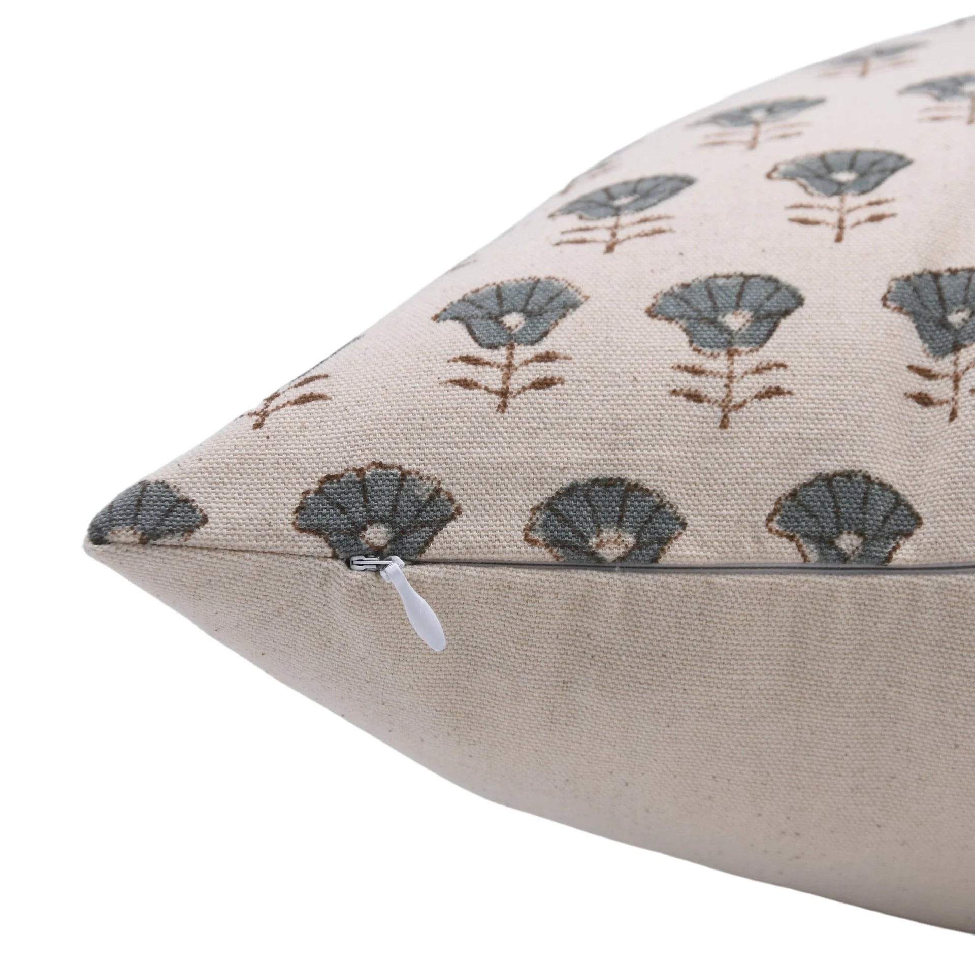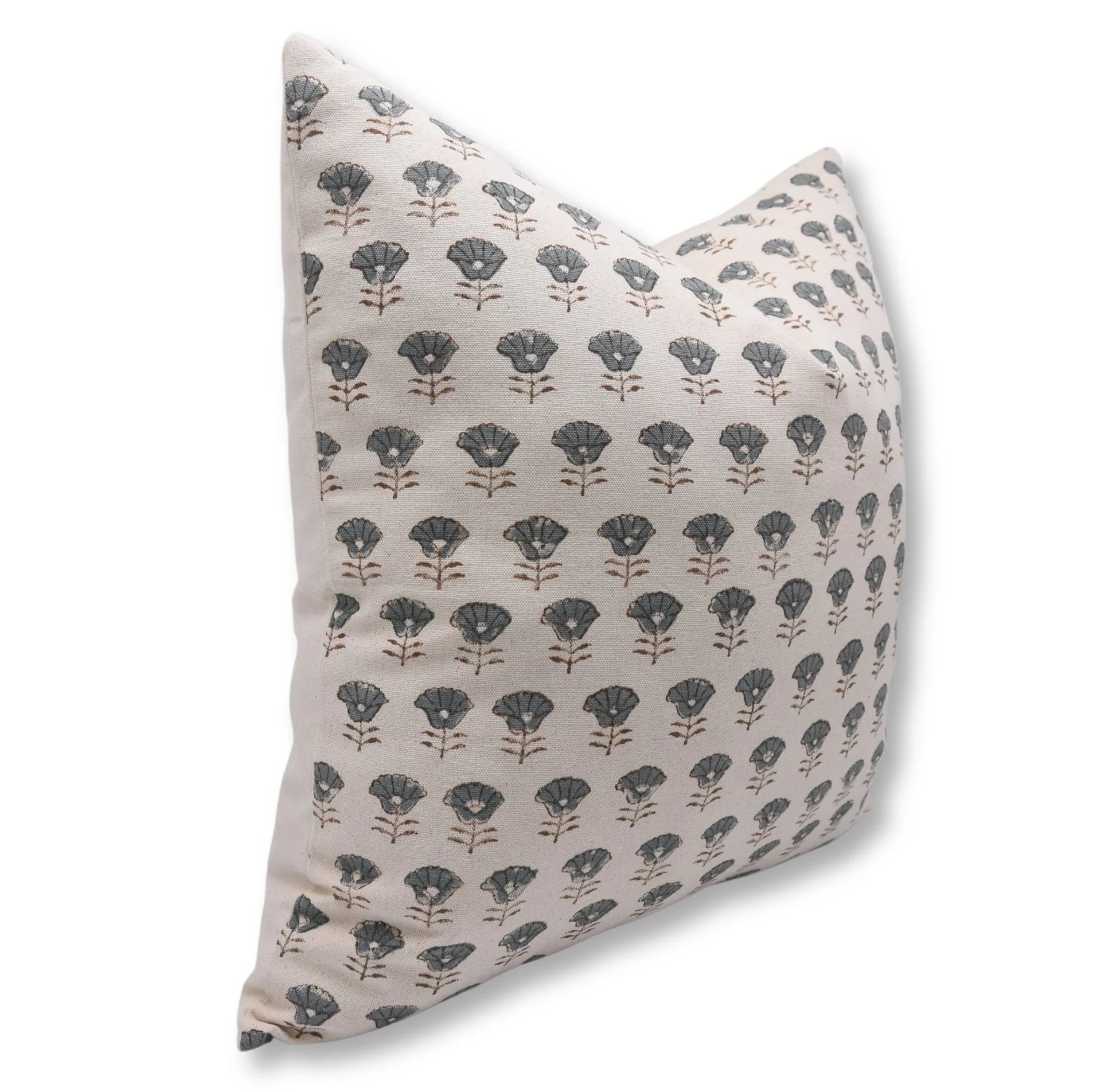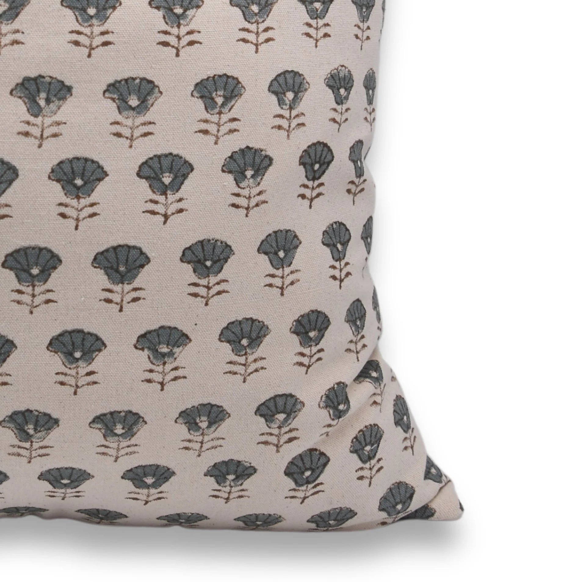 Funda de cojín hecha a mano con estampado de bloques por artesanos indios.