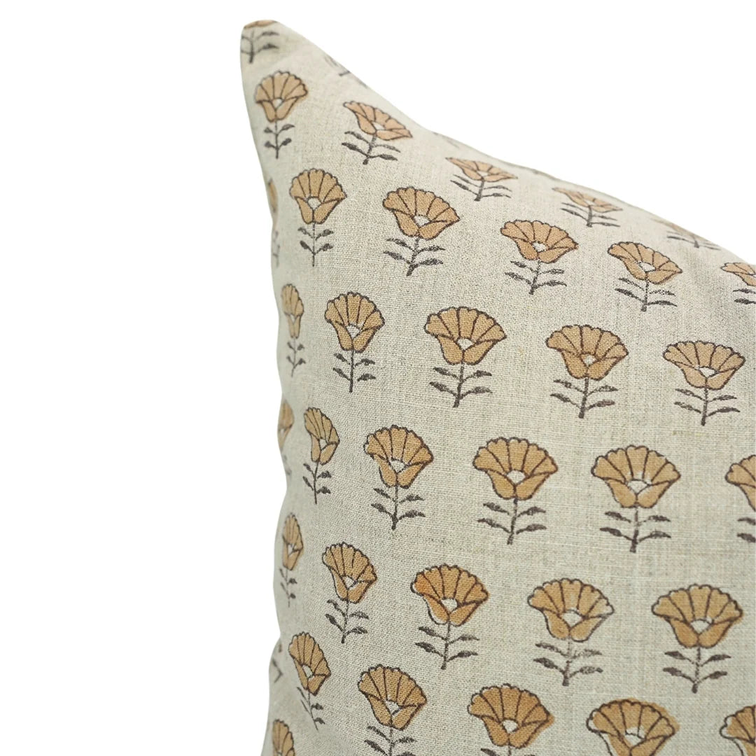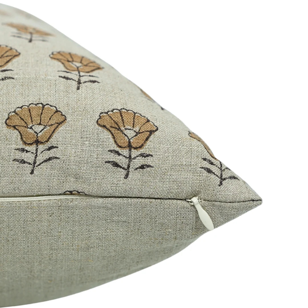 Funda de cojín hecha a mano con estampado de bloques por artesanos indios.