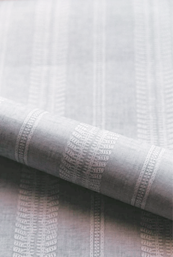 Papel pintado de rayas dispuestas verticalmente, con un efecto de bordado cuidadosamente elaborado sobre un fondo envejecido, proporcionando un toque de elegancia y sofisticación a cualquier espacio.