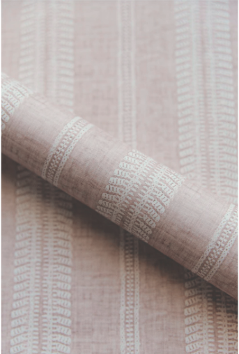Papel pintado de rayas dispuestas verticalmente, con un efecto de bordado cuidadosamente elaborado sobre un fondo envejecido, proporcionando un toque de elegancia y sofisticación a cualquier espacio.