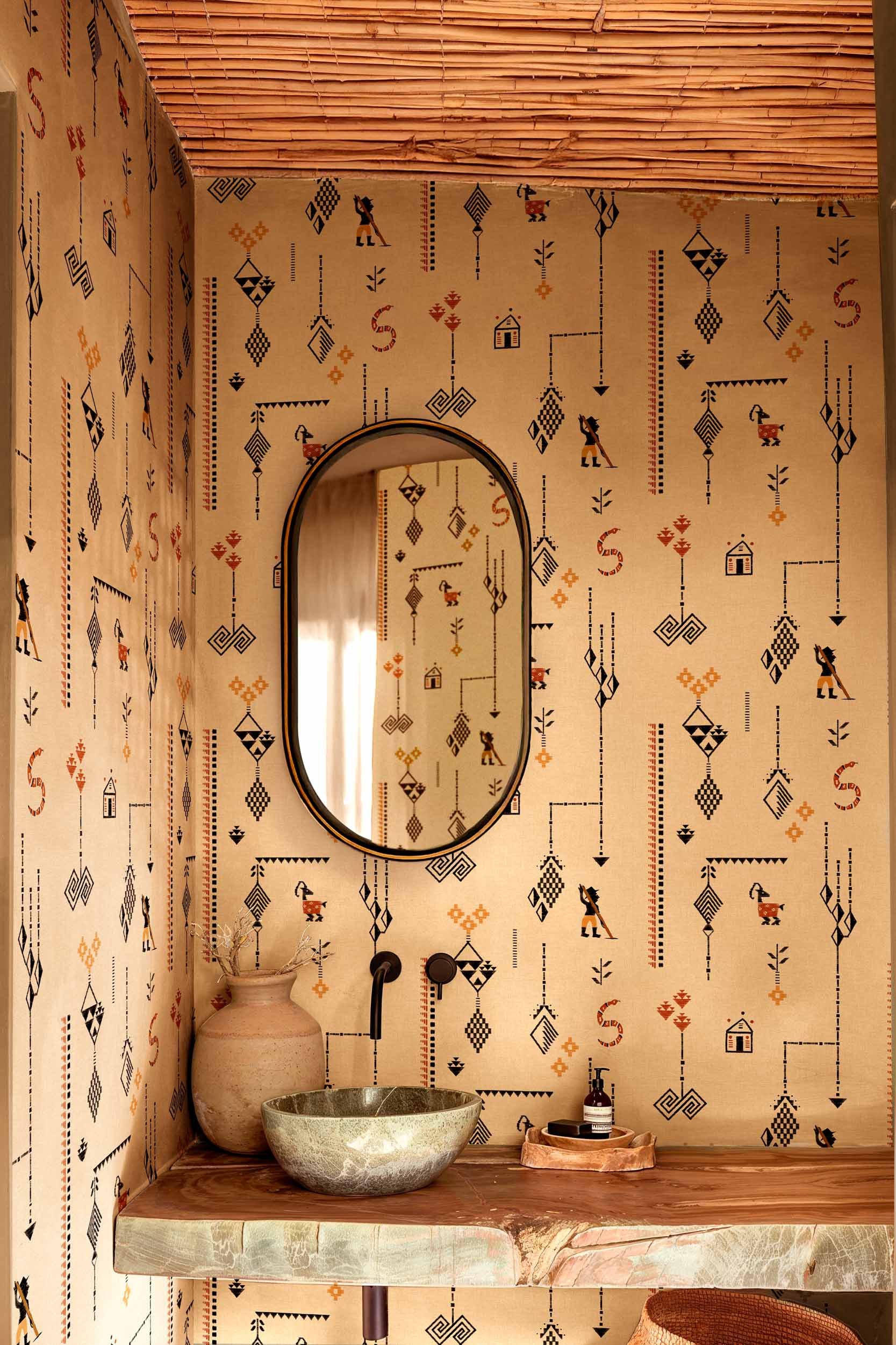 El papel pintado Criollo es un diseño de inspiración animal que representa escenas cotidianas de la vida rural, donde cabras criollas y pastores conviven en armonía. Un papel pintado que transmite autenticidad, calma y el encanto de lo sencillo.