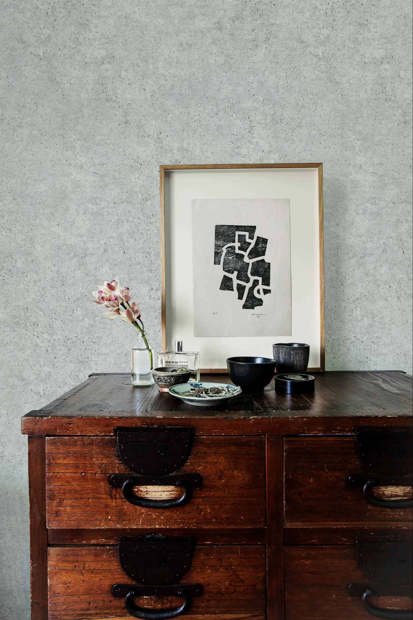 El papel pintado Ciment aporta un look industrial con textura de hormigón.