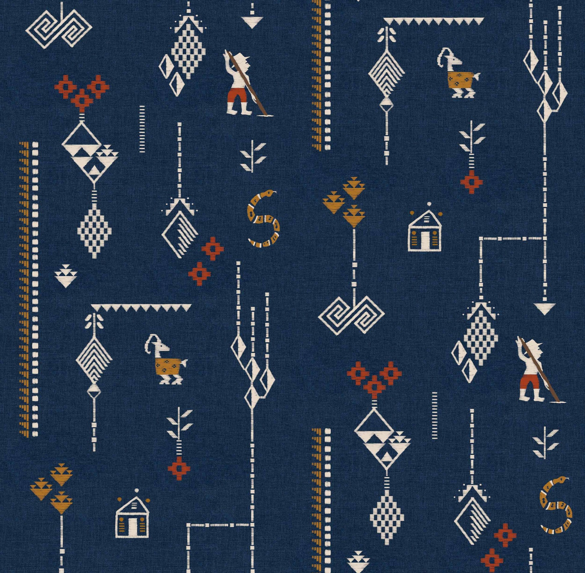 El papel pintado Criollo es un diseño de inspiración animal que representa escenas cotidianas de la vida rural, donde cabras criollas y pastores conviven en armonía. Un papel pintado que transmite autenticidad, calma y el encanto de lo sencillo.