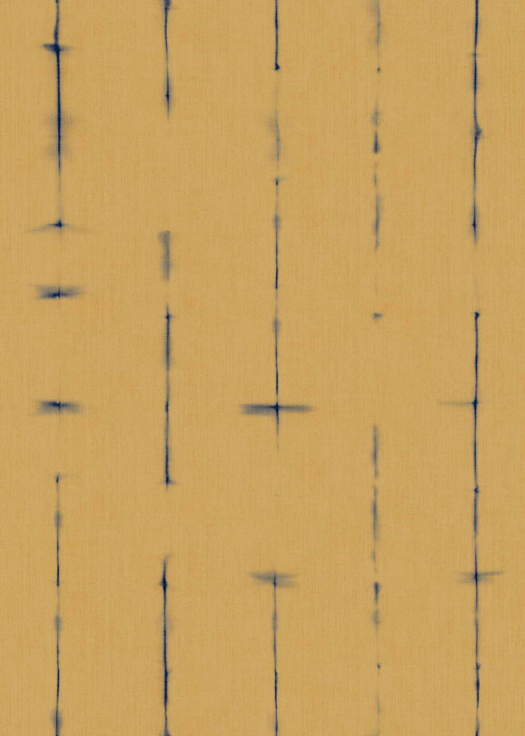 El papel pintado Miura Honey, con su delicado diseño de rayas en tonos amarillo y zul, evoca la sutil fluidez de los susurros del viento.