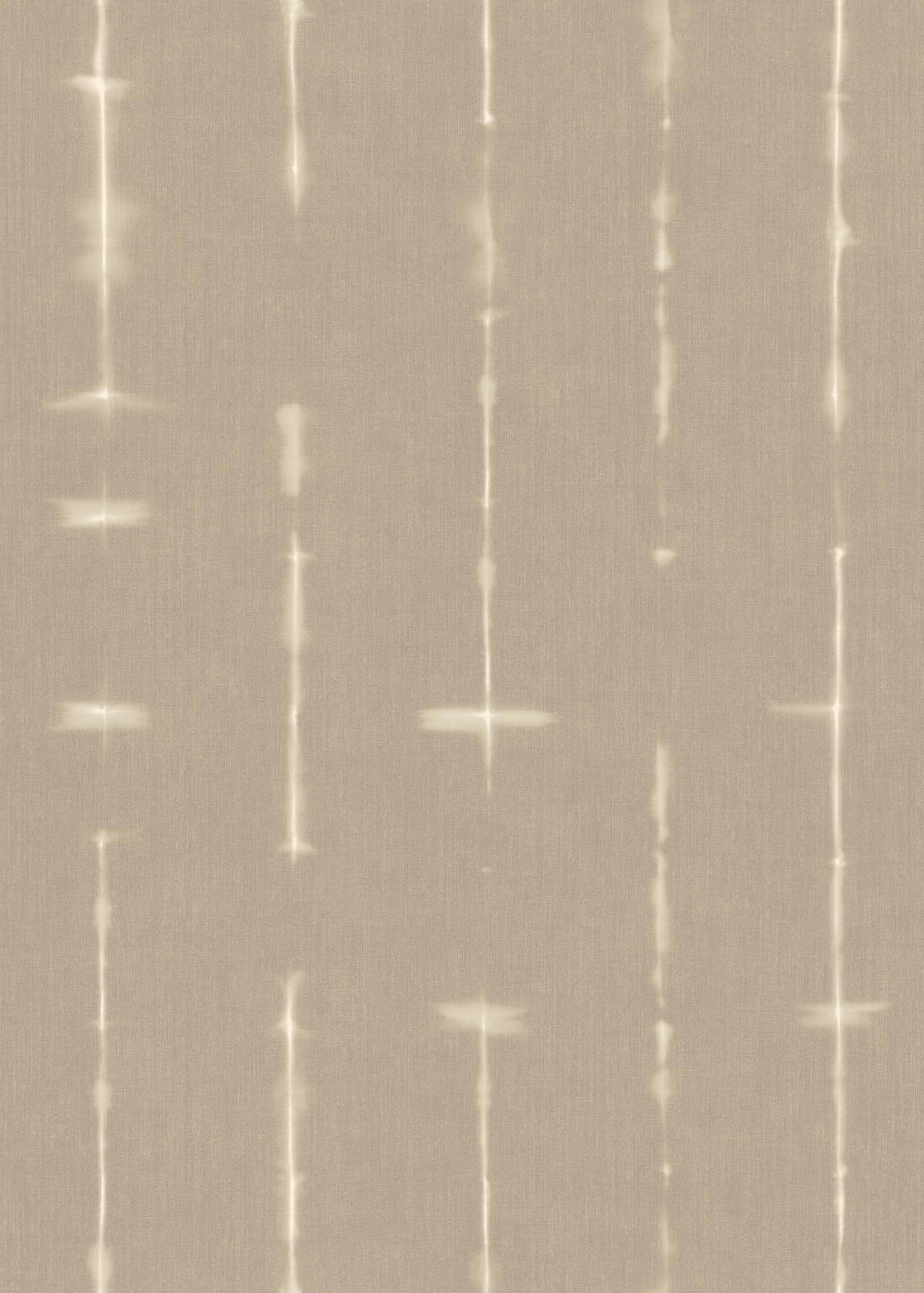 El papel pintado Miura Jute, con su delicado diseño de rayas en tonos beige y nude, evoca la sutil fluidez de los susurros del viento.